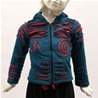 Il y a un jeu de contraste entre le bleu pétrole du gilet et le rouge de la doublure dévoilé par les griffures.