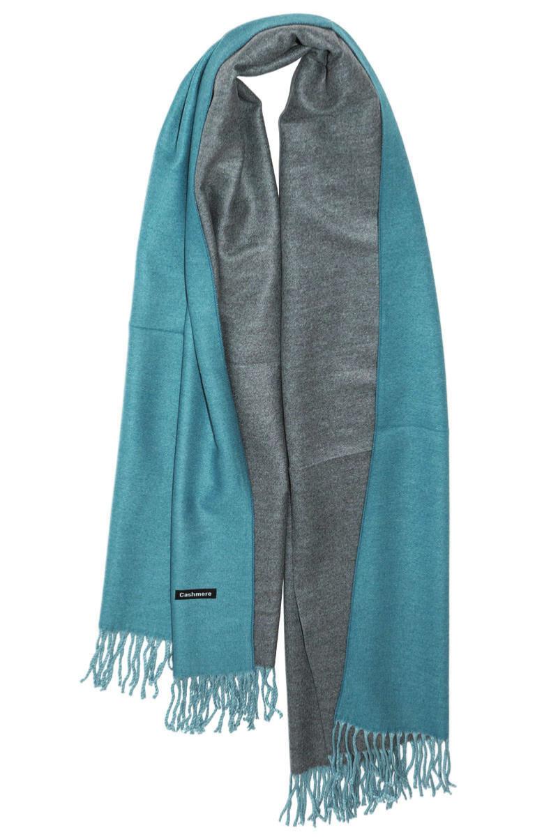 Grande écharpe en laine bleu pétrole à motif cachemire