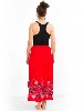 Cette jupe longue rouge à broderie motif fleuri est convertible en robe bustier.