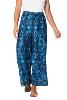 Ce pantalon femme fluide large ceinture à taille élastique à nouer est imprimé d'un motif ethnique bleu, parfait pour le printemps été !